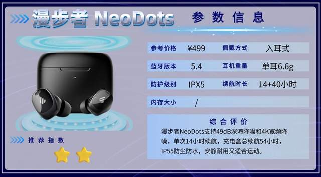 NeoDots优势在于强降噪、长续航(单次14小时,配充电盒54小时)、舒适佩戴,适合办公、通勤或轻度运动使用。运动表现中规中矩,高强度运动时可能不够稳固,但日常使用体验依然流畅自然。