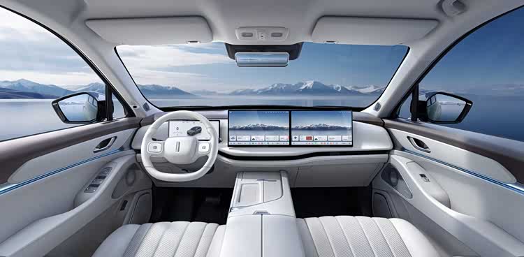 座舱方面,新车延续双辐式方向盘与多屏幕组合设计,前排15.6英寸悬浮式双联屏搭配后排17.3英寸娱乐屏,配合仪表盘、抬头显示和流媒体后视镜,构建全方位显示矩阵。车机系统搭载Coffee OS 3.4,操作逻辑清晰,配合2440瓦总功率的7.1.4声道音响系统(23个扬声器),带来沉浸式视听体验。