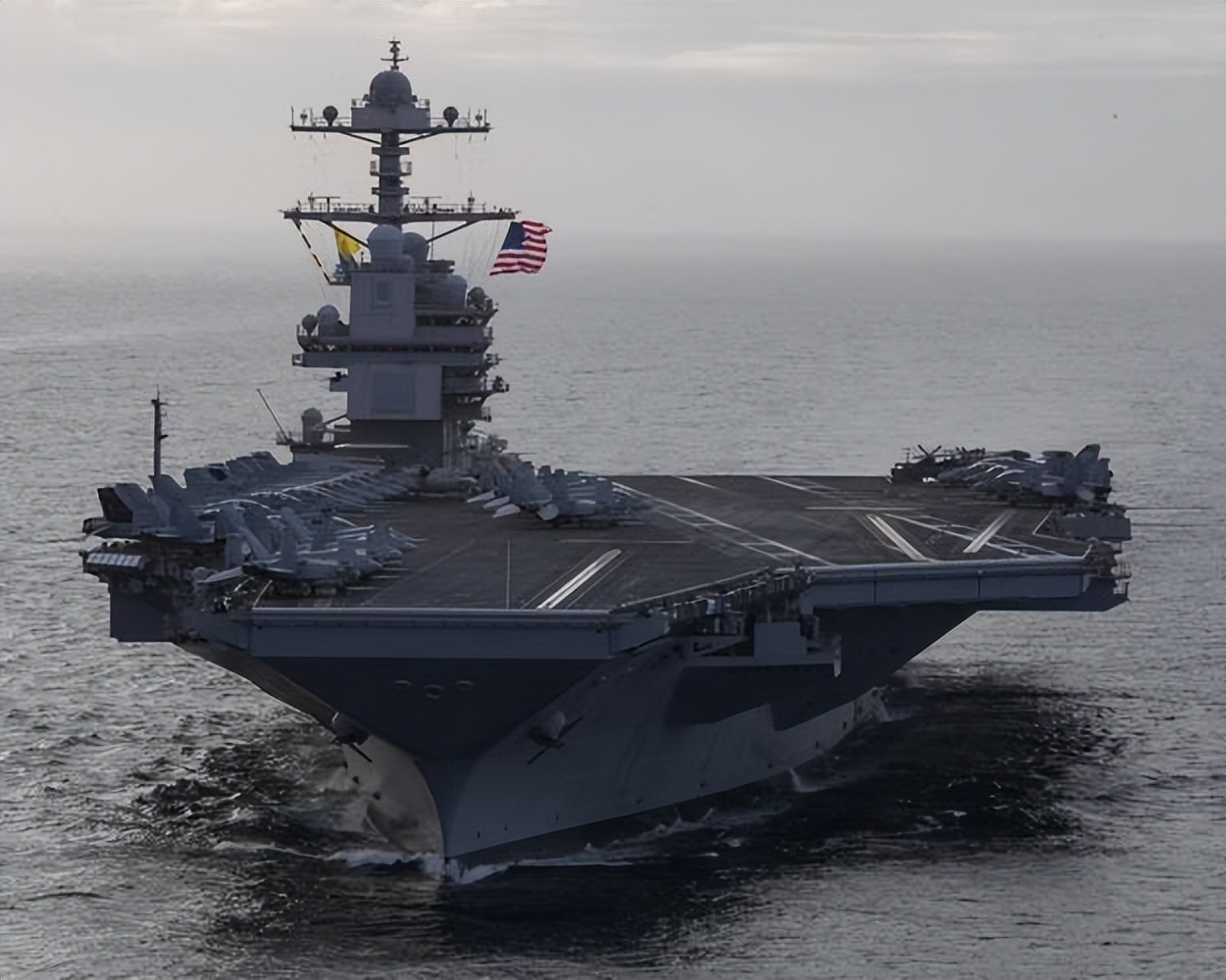作为美国海军最新最大的现役航母,“福特”号满载排水量超过10万吨,能搭载75架各型战机、容纳4000多人。