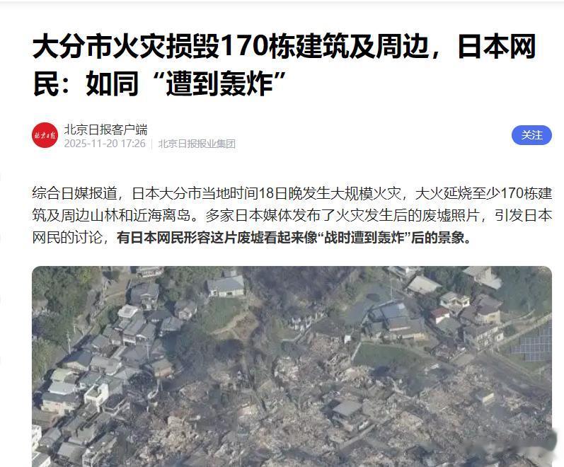 信息来源:大分市火灾损毁170栋建筑及周边,日本网民:如同“遭到轰炸”