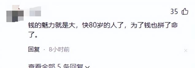 钱的魅力就是大,快80岁的人了,还要出来拼命“捞金”?
