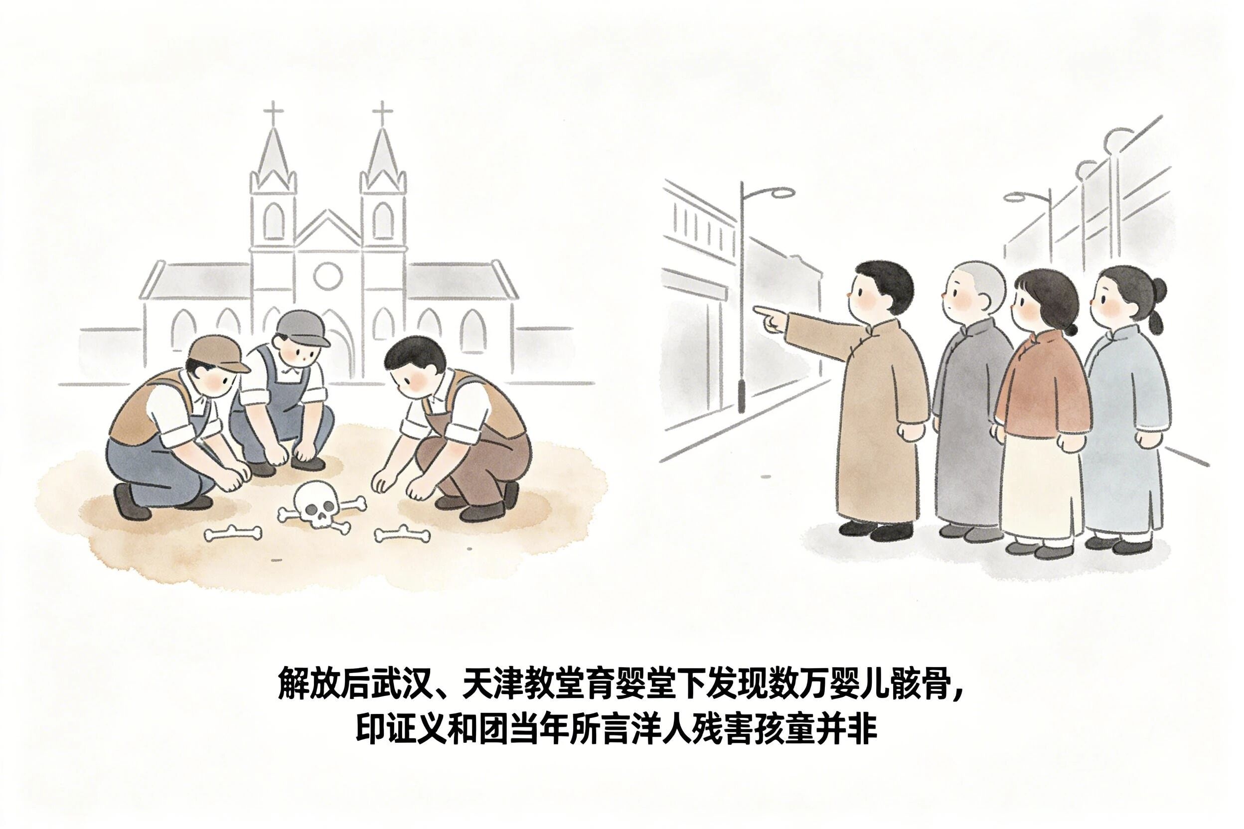 解放后在武汉天津教堂开设的育婴堂下面都发现了数以万计婴儿的骸骨!义和团当时说这些洋人吃小孩是真的!