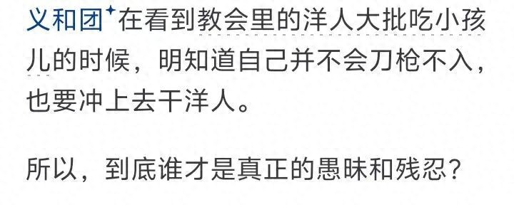一开始我看义和团资料就说到这个,当时我还想义和团的人也太愚昧了,这些教士怎么会吃小孩呢,人家是来帮咱的。念点法咒又怎么可能刀枪不入呢。现在看来,是我高估了洋人的文明程度,就算现在,这帮人跟野兽有什么区别。