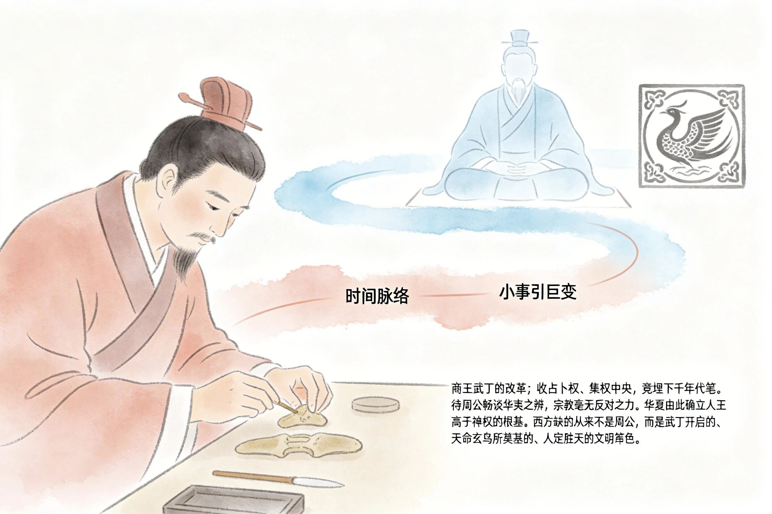 就是那个大名鼎鼎的妇好的丈夫。他做了一系列的改革,就是把占卜权和烧甲骨