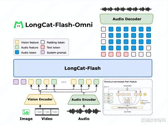 据介绍,LongCat-Flash-Omni以LongCat-Flash系列的高效架构设计为基础(Shortcut-Connected MoE,含零计算专家),集成了高效多模态感知模块与语音重建模块,在总参数 5600 亿(激活参数 270 亿)的庞大参数规模下,仍实现低延迟的实时音视频交互能力,为开发者的多模态应用场景提供了更高效的技术选择。