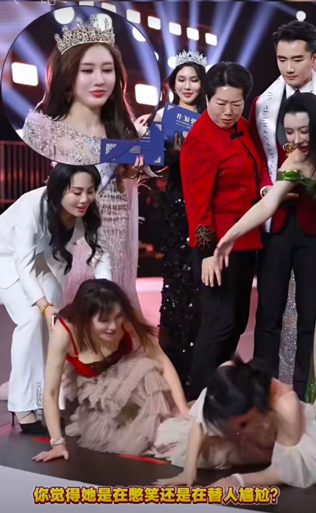 2025年12月27日,跨国小姐大中华区总决赛颁奖礼的一段视频,直接在网上炸了锅。冠军评委罗云琦(香港小紫藤)登台颁奖时意外摔倒,紧随其后特邀嘉宾付玲云也不慎绊倒,连环摔的名场面瞬间刷屏社交平台,评论区被“求名字”的留言彻底淹没,网友们吵翻了天,热度一路狂飙。