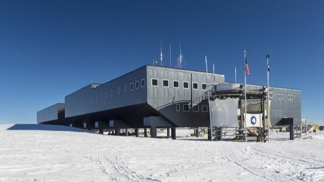 转换角度,我们来到第三座无人岛。位于地球另一端南极的阿蒙森斯科特考察站。