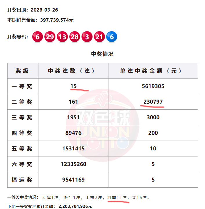 天津1注,浙江1注,山东2注,河南11注,共15注。