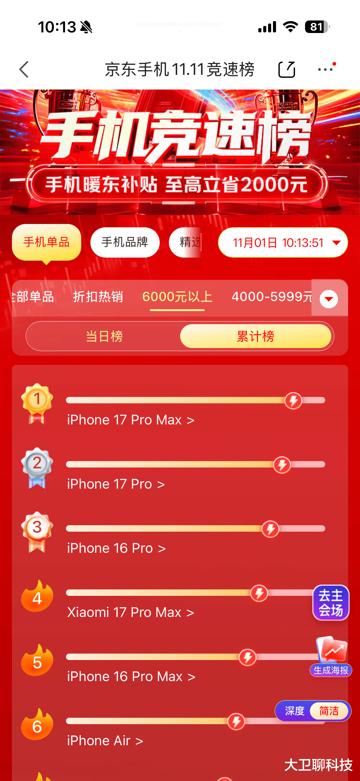 根据数据,在高端旗舰机市场,除了苹果之外,国产阵营只剩下一棵独苗了,那就是小米,国产第一。在6K+高端市场,小米17 Pro Max打破苹果iPhone17系列的垄断,斩获了Top4的位置,要知道排名前五的机型,除了小米17 Pro Max,其他席位全都被苹果霸占了,这也证明了,在国产阵营中,小米手机已经成为国产高端旗舰的代表之一,高端化投入超千亿,终于有了显著的成效,数据就是最好的证明。