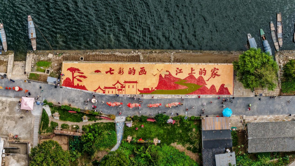 秋意渐浓,歙县深渡镇九砂村迎来一年一度“晒秋”盛景。火红的辣椒、金黄的玉米、橙亮的南瓜错落铺展于白墙黛瓦之间,与新安江的清波相映成趣,绘出一幅“七彩的画·江上的家”的生态艺术长卷。