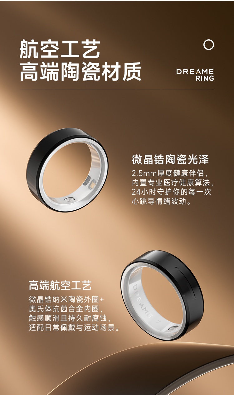 除此之外,还有7x24小时无感监测:它可持续监测心率、血氧饱和度、睡眠质量等关键指标,如同一位贴身健康顾问。特别是在睡眠期间,它能精准分析睡眠结构,提供专业的改善建议。更有区别于其他智能戒指的主动健康管理,结合高精度传感器与AI智能算法,戒指能智能识别异常心率等潜在风险,并及时通过那恰到好处的震动发出预警,将健康管理从“被动记录”升级为“主动关怀”。追觅AI智能戒指,不仅仅是一款科技产品,更是尖端技术普惠于生活的典范。它通过业界领先的震动交互,实现了“无声胜有声”的默契;凭借源自马达技术的精准监测能力,构筑了全天候的健康防线。选择它,就是选择一种更智能、更健康、更从容的品质生活方式。