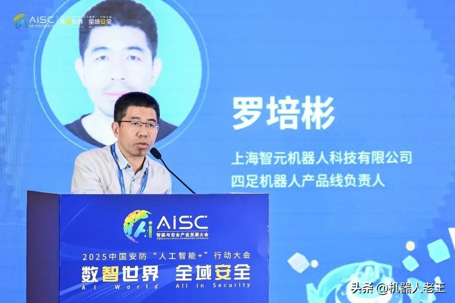 上海智元机器人科技有限公司四足机器人产品线负责人罗培彬在《以智能机器创造无限生产力》报告中,全面阐述了智元机器人的发展战略。他从产品、商业、生态等多维度解读了全系列、全场景布局规划,展现了人形机器人发展的"智元速度",致力于加快具身智能在应急安防关键场景的落地应用。