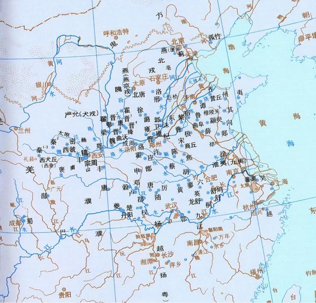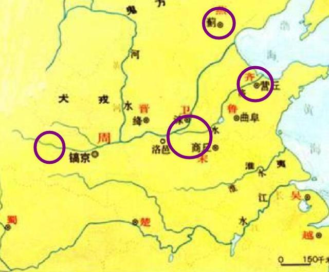 右紫圈为太公望的齐国,位于今淄博市一带,镇守着东方海盐输送的交通要道;