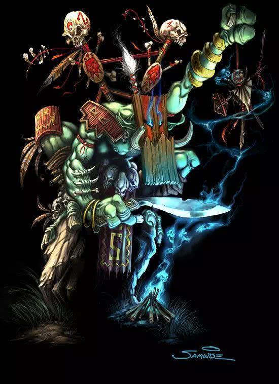 下图为某西方电子游戏中“巨魔巫医”的形象。