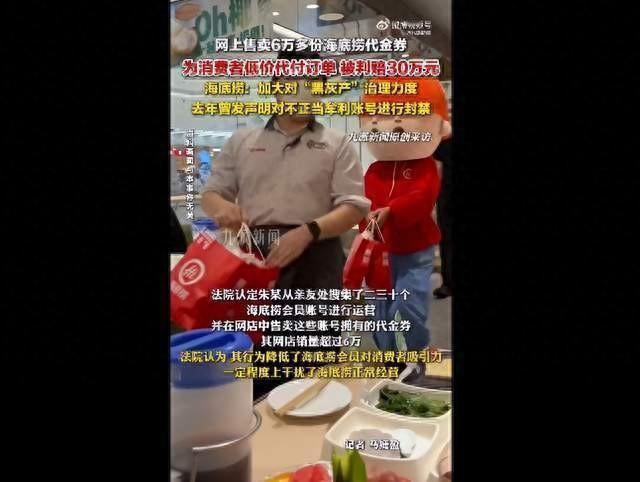 近日,杭州市余杭区法院作出了一项民事判决,朱某因在网上销售海底捞代金券,并为消费者低价代付订单,构成不正当竞争,被判赔偿海底捞经济损失30万元。