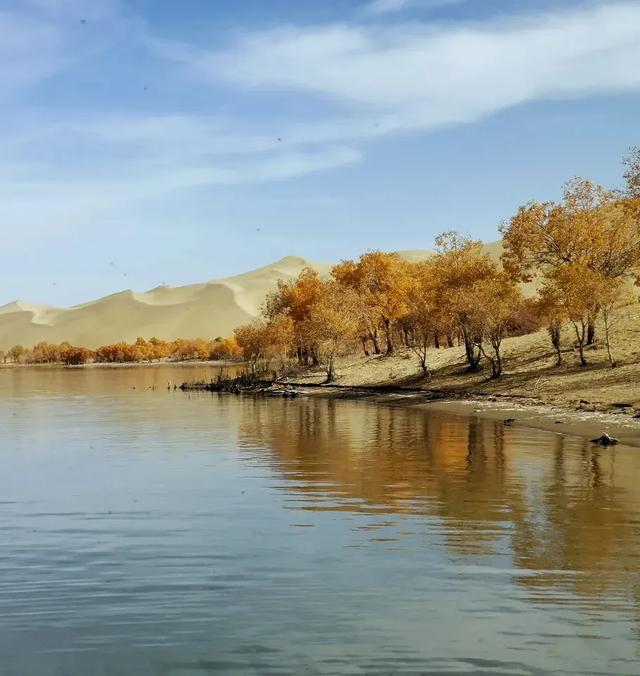 而三百公里外的尉犁31团,罗布湖却依然波光粼粼。从库尔勒出发,自驾三小时即可抵达的沙漠明珠,呈现着水与沙的和谐共生。游人可以垂钓、滑沙,看胡杨倒映在湖中,体验截然不同的大自然的律动。沙丘环抱的湖水,像一块葫芦形的蓝宝石。在严苛的沙漠环境中,生命依然顽强地生存。