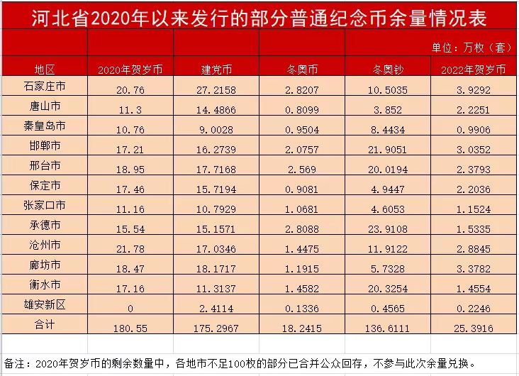 2、河北省。采用的是线上预约兑换与现场排队兑换相结合的兑换模式,这北京市不同的是虎币、建党100币、鼠币均为线上预约,预约时间分别为10.30、11点、11.30,冬奥币钞采用线下排队兑换。各地的预约额度有公告,但网点及可兑换数量明细,还是要自行到承办银行的官网进行查询。