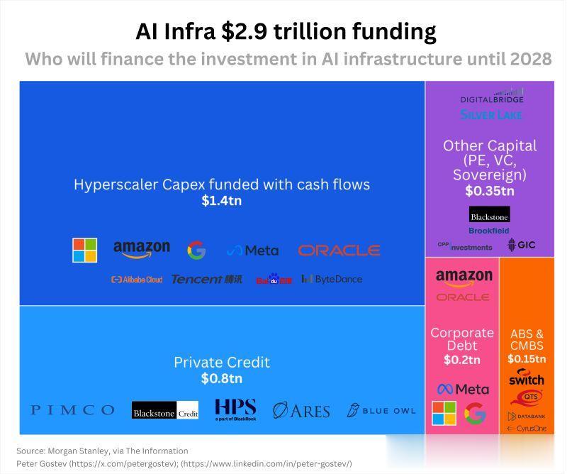 Morgan Stanley预测,未来三年(2025-2028),大厂会在AI和数据中心上斥资2.9万亿美金。