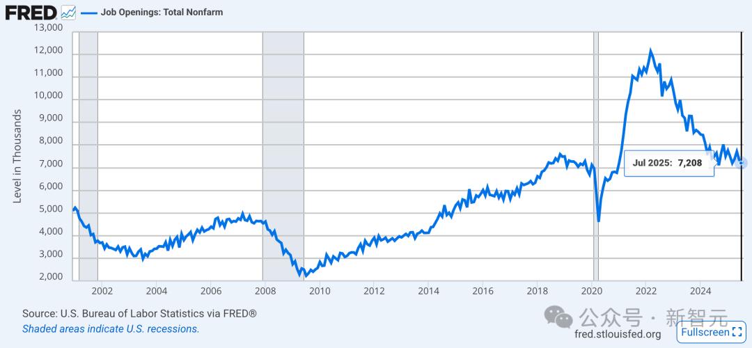 根据知名招聘网站Indeed近期的报告,美国就业岗位同比下降7.3%,数据基本吻合。