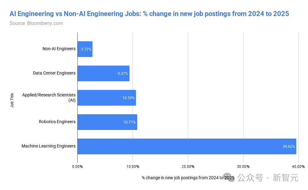 从2024年到2025年,机器学习工程师的招聘岗位飙升了40%,是所有岗位中增幅最大的。