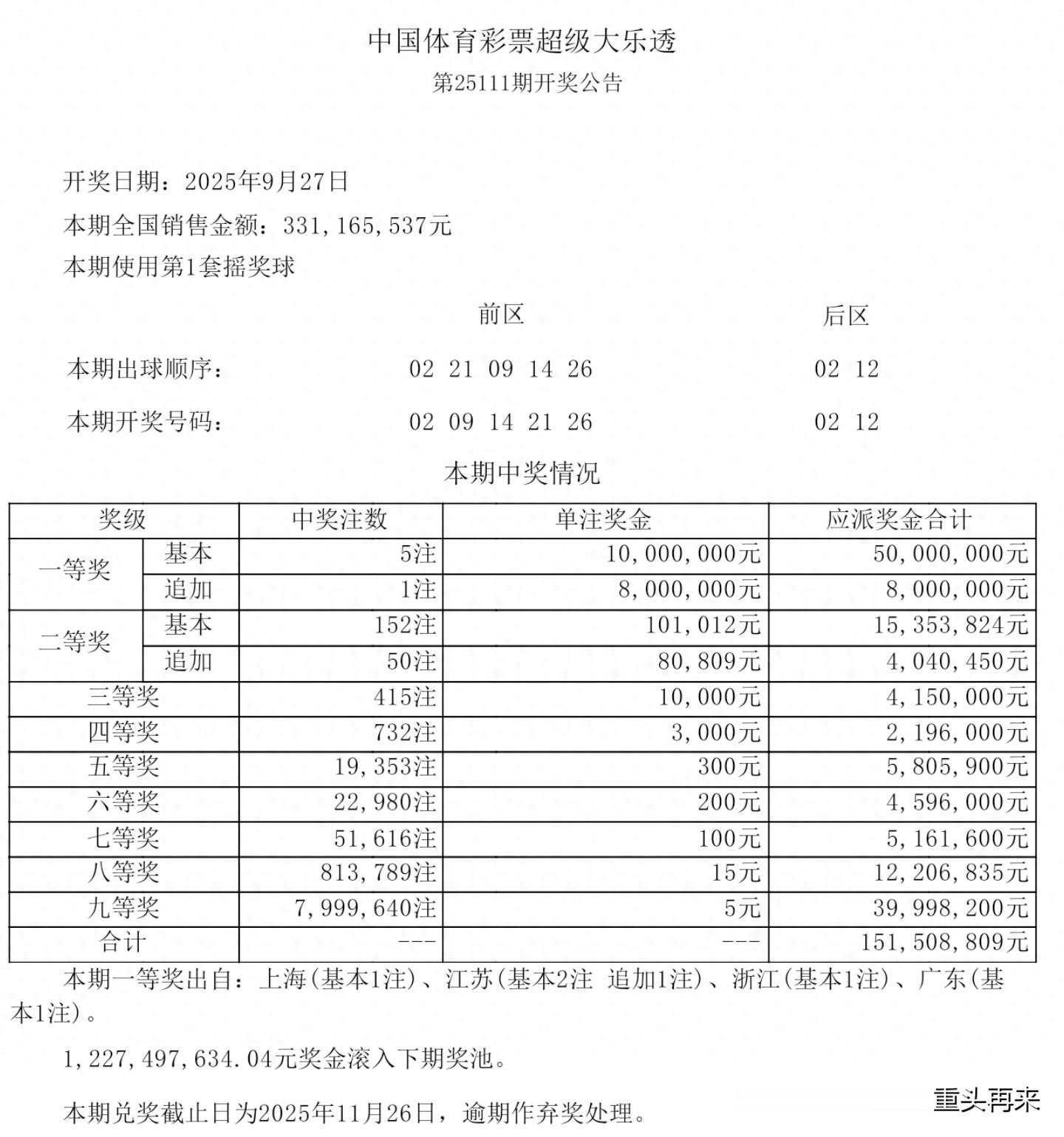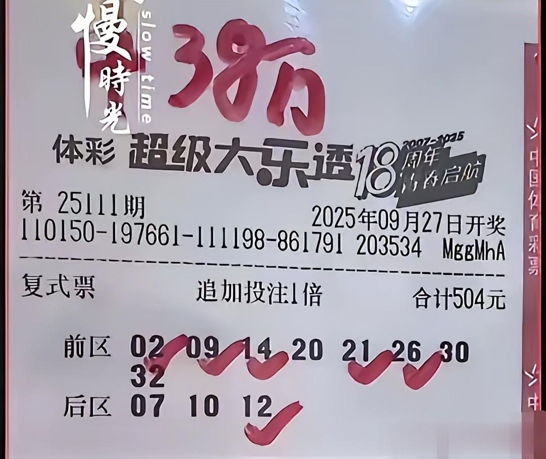 2025年9月27日,大乐透第111期。