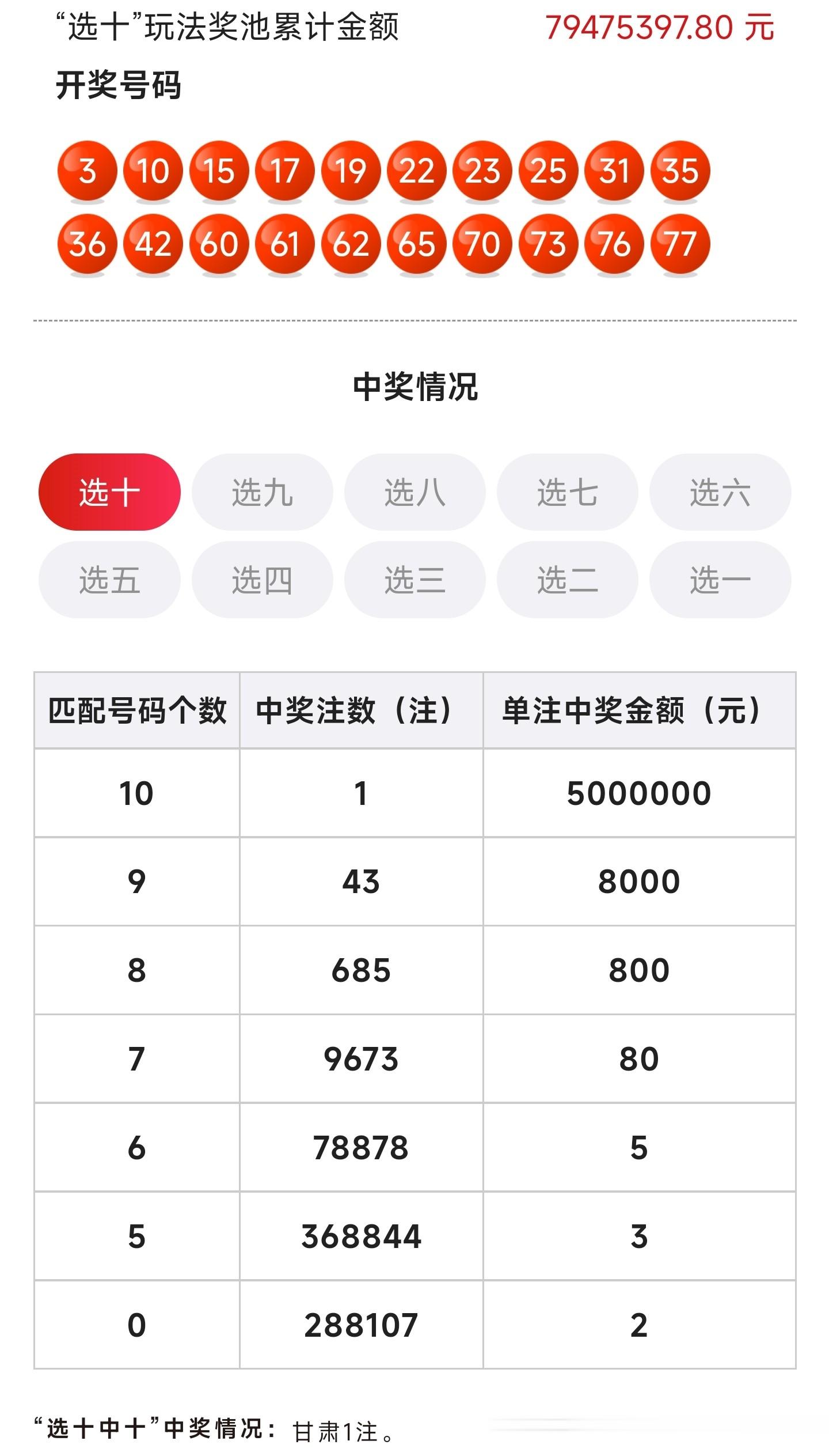 选十中十也开出了一注。