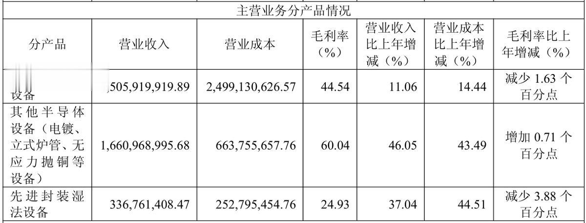 具体来看,受益于半导体行业景气以及公司产品结构多元化的发展策略,盛美上海半导体清洗设备收入为45.06亿元,同比增长约11.06%;公司2025年其他半导体设备(电镀、立式炉管、无应力抛铜等设备)收入为16.61亿元,同比增长约46.05%,是增长最为迅猛的业务,也是毛利率最高的业务,达到60.04%;先进封装湿法设备收入为3.37亿元,同比增长约37.04%。