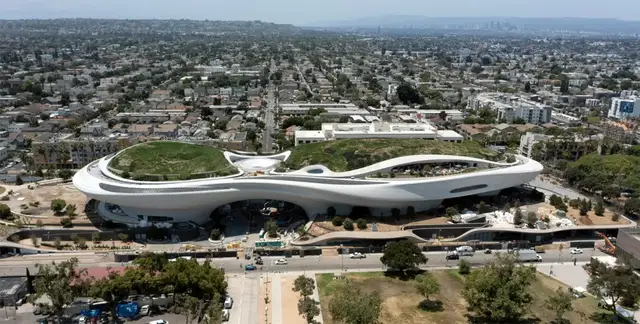 在美国洛杉矶博览公园内,卢卡斯叙事艺术博物馆施工已接近尾声。该建筑由马岩松领衔的MAD建筑事务所设计,于2018年3月破土动工,预计2026年9月正式对公众开放,总耗资约10亿美元。