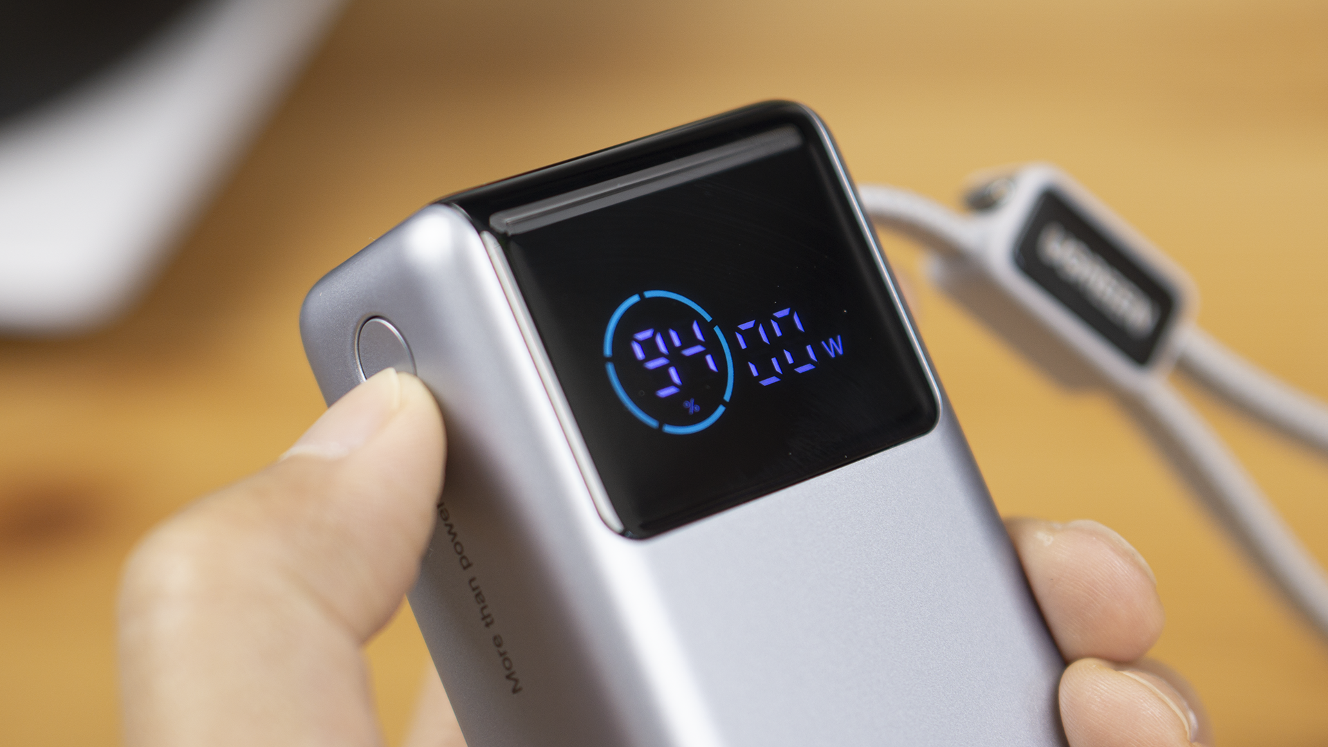 我们轻轻点按侧面的按键(或者充放电时),就可以激活它的屏幕。这个时候,我们就可以看到它的剩余电量及充放电的功率。看得到,也就多了一分安心。