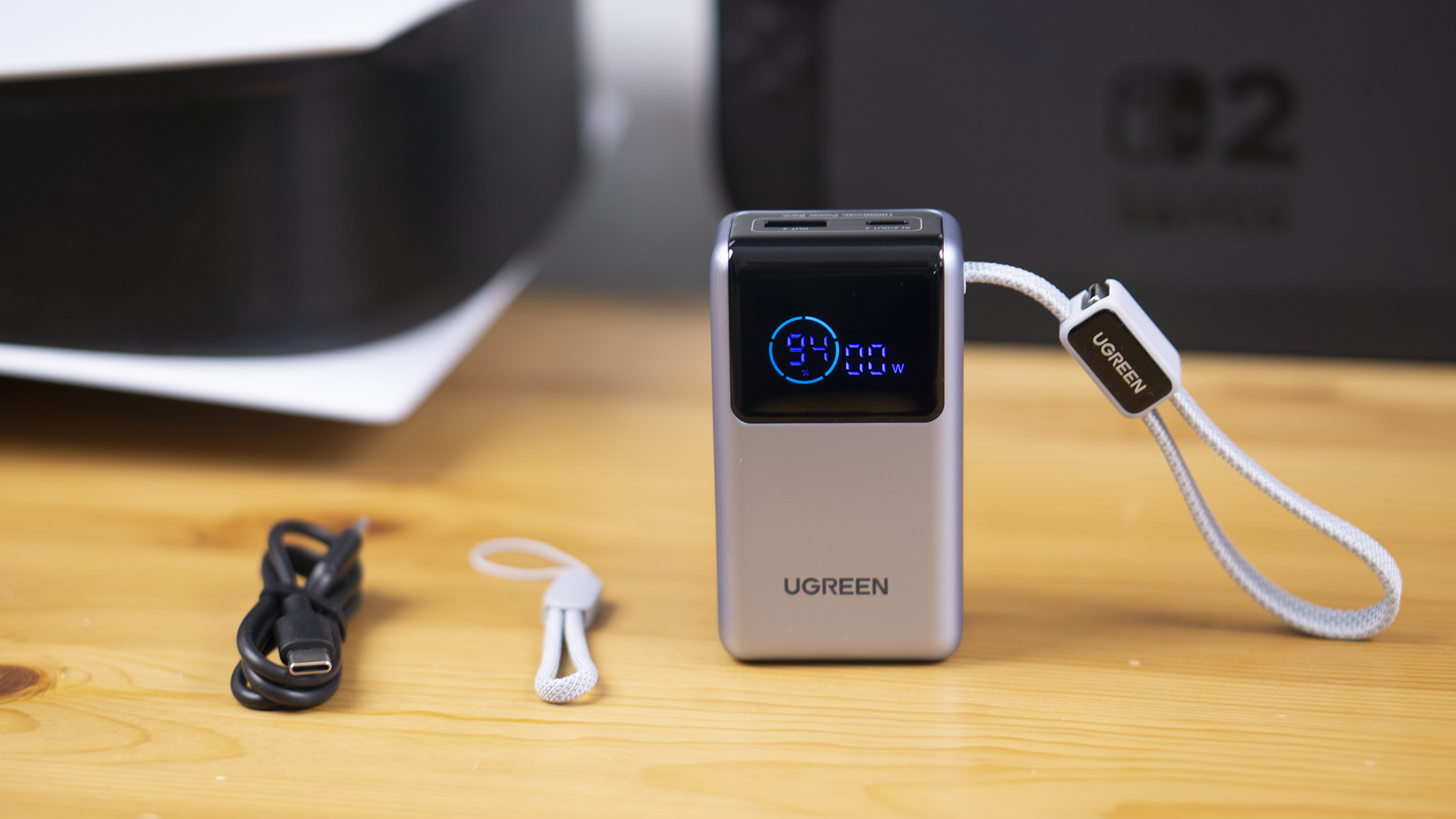 除了绿联能量湃 Pro 55W 充电宝外,它还附赠了一个短小的挂绳、及一根双头TYPE-C的充电线(60W)。