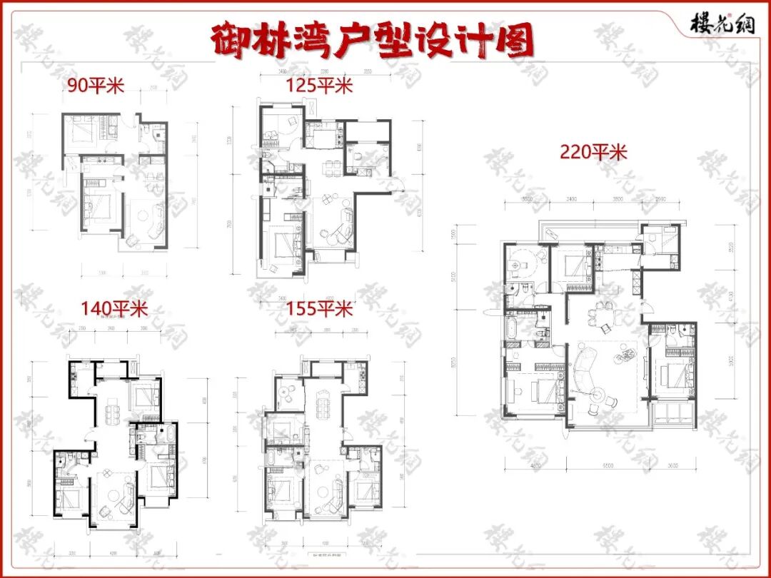 在户型配比上,这三个盘是存在竞品关系的。御林湾的南区为90/125/140/155平米户型,西区为213/220平米户型。