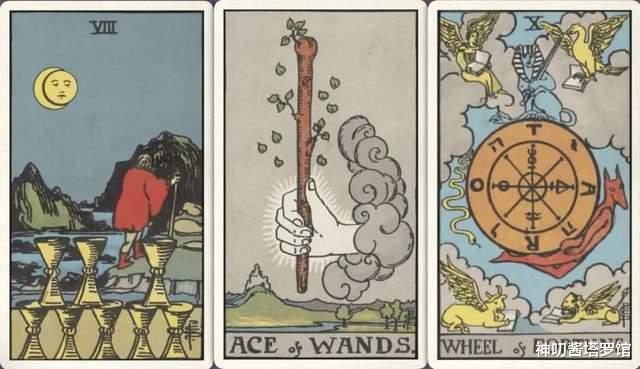 牌:圣杯八+ 权杖ace+ 命运之轮+