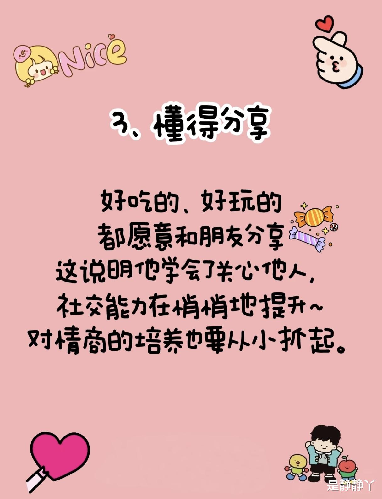 愿意分享的孩子,内心一定充满温暖。他乐于将心爱的零食和玩具与小伙伴分享,这种行为展现出他关心和理解他人情感的能力,不再以自我为中心。分享是一种高级情感智慧,让他体验到给予的快乐,明白拥有不必独占。这种品质有助于他在集体中获得友谊和良好的人际关系。当他第一次把玩具递给别的小朋友时,你的肯定和鼓励让他知道分享是值得骄傲的。这些小小的肯定教会了他如何与世界温柔相处。