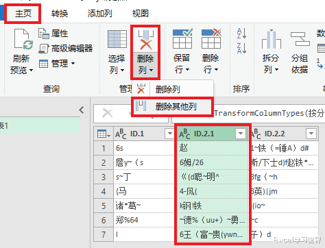 4. 选中 ID.2 列 --> 用同样的方法按“)”拆分一次