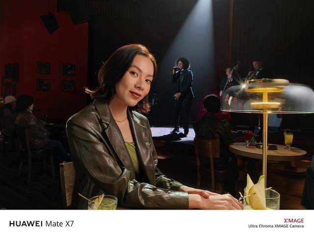 而视频中的室内乐队演出场景中,舞台冷光与台下暖光的强烈冷暖反差,拍照时极易导致画面要么过曝、要么死黑。针对此,华为Mate X7的第二代红枫影像同样游刃有余,舞台表演者的服装色彩与面部表情都清晰细腻,台下观众席的面部细节也真实还原,光影过渡自然如肉眼所见,从此让冷暖光交织的场景不再成为影像创作的桎梏。