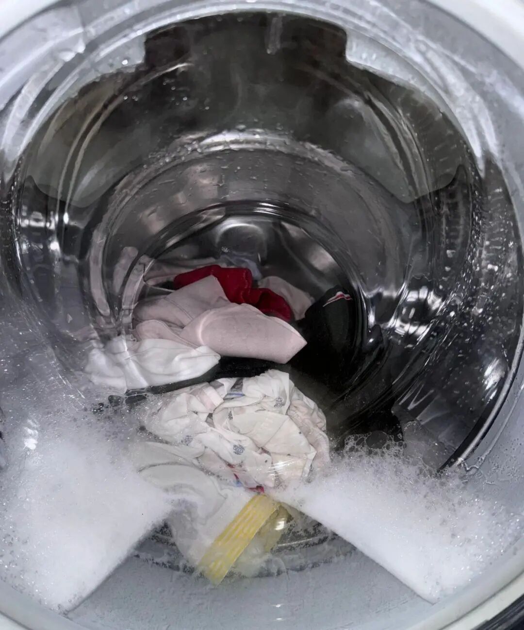 2)洗衣液也别放太多,而且最好用低泡型的,不然快洗漂洗次数少,很容易有残留,洗完的衣服有怪味,还黏糊糊的。