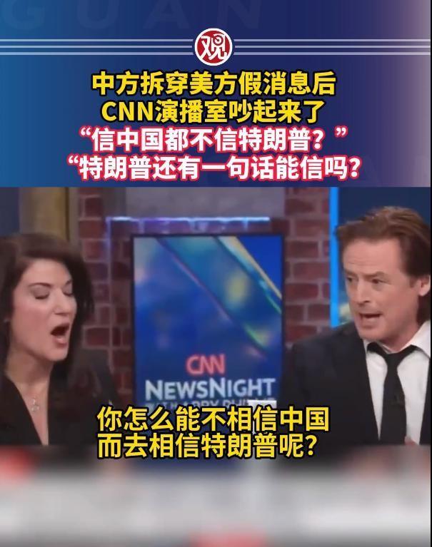 美国有线电视新闻网(CNN)的一档直播节目,嘉宾们围绕着究竟该相信中国还是相信特朗普这一核心问题,展开了一场火药味十足的争论。