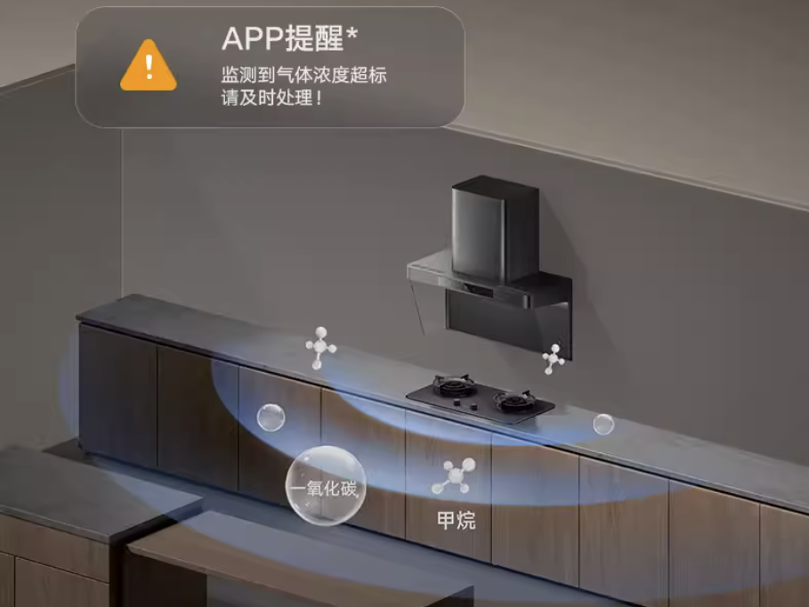 24小时燃气监测功能更灵敏,当甲烷浓度超2000ppm时,能快速联动切断气源、开启换气,特别适合家里有老人或小孩,对安全要求极高的家庭。