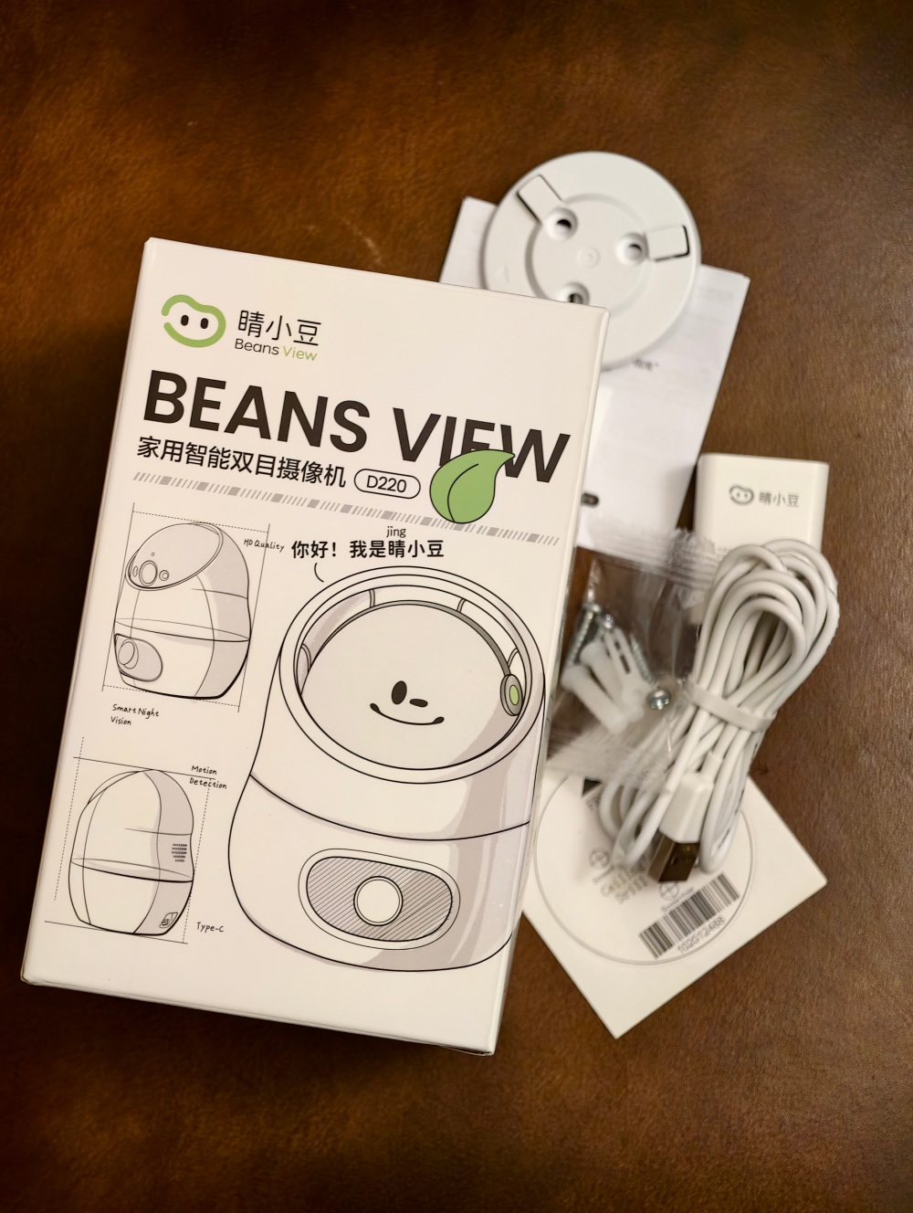 最近入手了一个宝藏摄像头——晴小豆家用智能双目摄像机D220。单看包装盒时,就被它的萌系设计击中了 —— 清新的白色包装盒上,卡通化的摄像头形象咧嘴微笑,“你好!我是晴小豆” 的标语瞬间拉近距离,谁能想到这是个家庭守护神一样的安防设备呢?