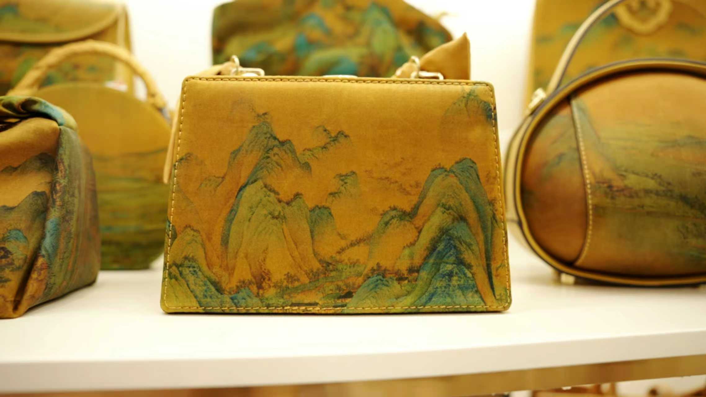 围拢的人群里响起低低的赞叹,不少人下意识地凑近展台,目光在一只只包袋上流连。一位戴珍珠胸针的女士伸手触摸香云纱的肌理,指尖感受到的软糯与筋骨让她眼中一亮,轻声问:“这包的纹样看着眼熟,是《千里江山图》的意境吧?”小涵眼里立刻亮起光,语气里满是对文化的敬畏与热忱:“您太懂了!这只‘青绿山河’款,我们把王希孟的山水织进了香云纱里——既有‘咫尺千里’的东方意境,又做了轻便的抽绳设计,配风衣去美术馆,或是参加文化沙龙,您就是行走的东方美学代言人,无需多言,品味自现。”