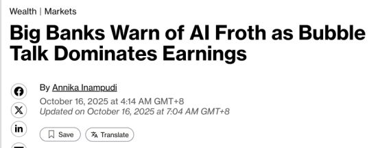 这些表态发布于银行业交出亮眼业绩的背景下。本季度,华尔街交易活动与收入均创下新高,部分得益于AI技术引发的市场乐观情绪。据报道,高盛三季度营收达到公司历史上同期最高水平,花旗五大业务板块收入同样刷新纪录。