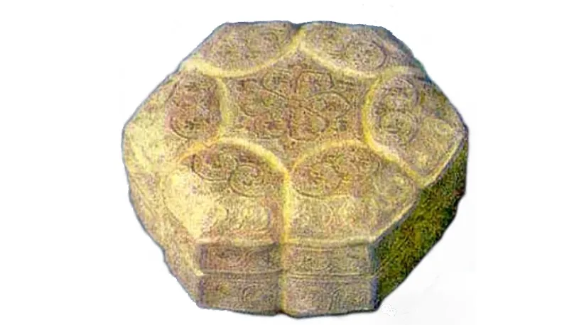 宝相花纹花瓣形银盒,银盒呈六瓣式葵花形,通体施鱼子纹。盒盖中央饰一朵宝相花纹,外一周饰折枝阔叶纹和折枝串花纹,两种纹饰间隔排 列,共六朵,与盒的六瓣造型一一对应。