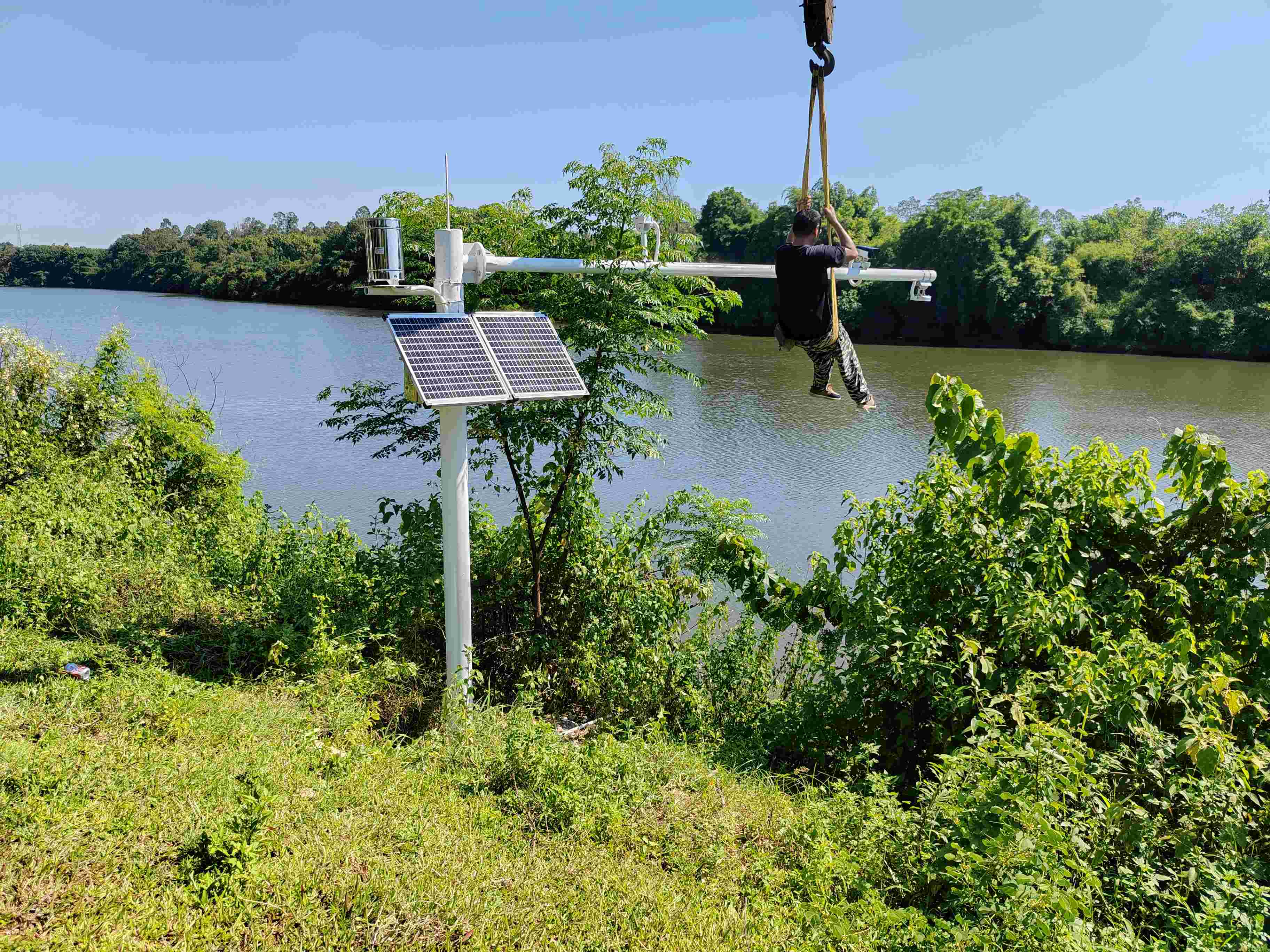 监测系统的可靠运行依托通信、供电、防雷三大保障体系的协同建设:通信传输将各类监测信息汇集至物联网终端,优先采用有线互联网、北斗卫星等公共通信资源,通信规约符合 SL/T783、SL651 标准,实现监测信息一站多发。供电优先采用太阳能浮充蓄电池,推荐 12V 电压,蓄电池供电能力达设备最大工作电流 1.5 倍,雨水情设备可保障 30 天阴雨工作、视频设备保障 7 天。防雷采取避雷针、避雷器等措施,立杆接地阻值≤10,各类采集设备均配置避雷器。