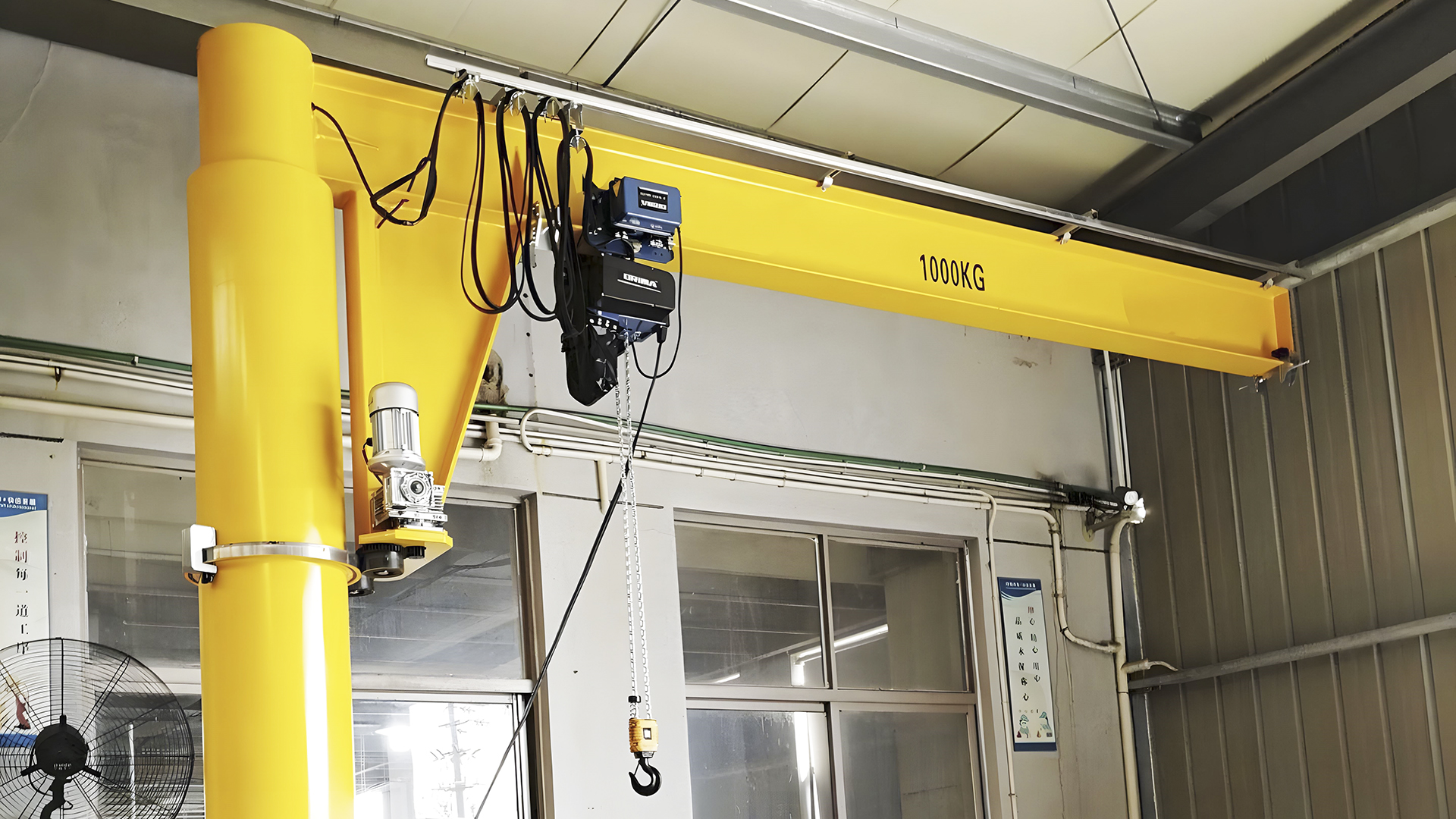 2. 操作中守规矩:严禁超载(设备上都有额定负载标识,比如“500kg”就绝不能吊600kg);起吊时要缓慢升,避免重物晃动;悬臂旋转时,要确认周围没有工人或障碍物,防止碰撞;不能让重物长时间悬在空中(比如中途离开岗位)。