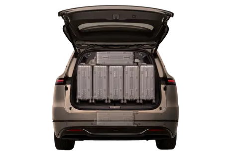 作为六座车型,装载能力同样关键。深蓝S09的标准行李箱容积为427升(满员状态),隐藏盖板下另有44升储物空间,至多可容纳7个20寸行李箱;而理想L9满员时后备箱仅剩332升,实用性稍逊一筹。值得一提的是,深蓝S09支持二、三排座椅放倒,可拓展出2.5米的露营床或1.9米的后舱大床,搭配后备箱220V电源接口,满足家庭户外露营需求;相比之下,理想L9三排放倒后存在一定坡度,便利性略打折扣。
