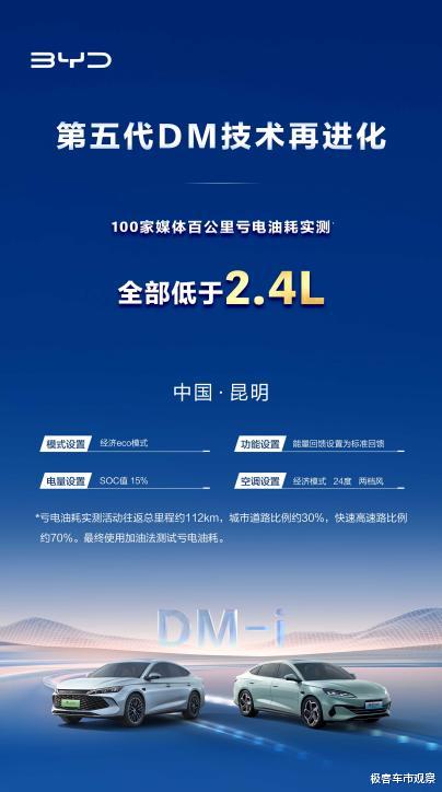 第五代DM技术再进化,此前经过百家媒体实测,以实测数据重塑混动能效标杆,秦L DM-i和海豹06DM-i车型的实测百公里亏电油耗全部低于2.4L,比权威机构认证的2.6L还要低,从实测可以看出第五代DM技术进化后更省了。