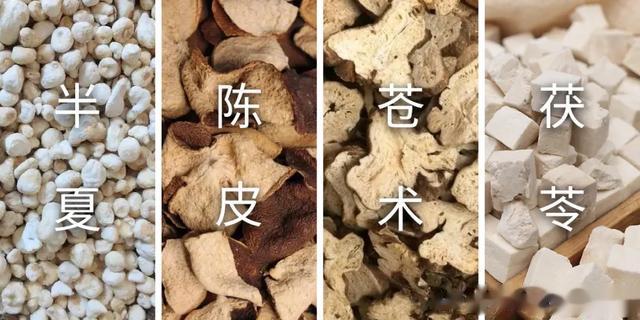 十人九湿,很多很多的毛病,其实都是湿邪在作怪。湿聚成痰,所以,化掉痰湿就可以搞定很多奇奇怪怪的毛病。半夏+陈皮是化痰最佳搭档,苍术燥湿健脾,茯苓渗湿健脾,它俩用来搞定湿邪,这4味药配在一起,把调理体内的湿痰。