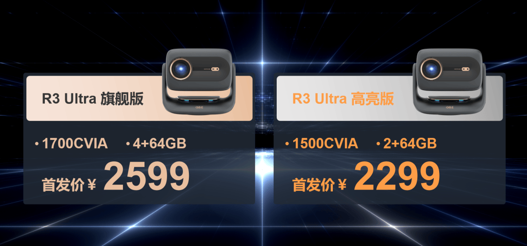 这里也必须跟大家讲清楚,R3系列提供双版本选择:旗舰版 1700CVIA 配4+64GB内存,首发2599元,适合追求极致音画的发烧友;高亮版1500CVIA 配 2+64GB 内存,首发2299元,性价比拉满,满足日常家用绰绰有余。
