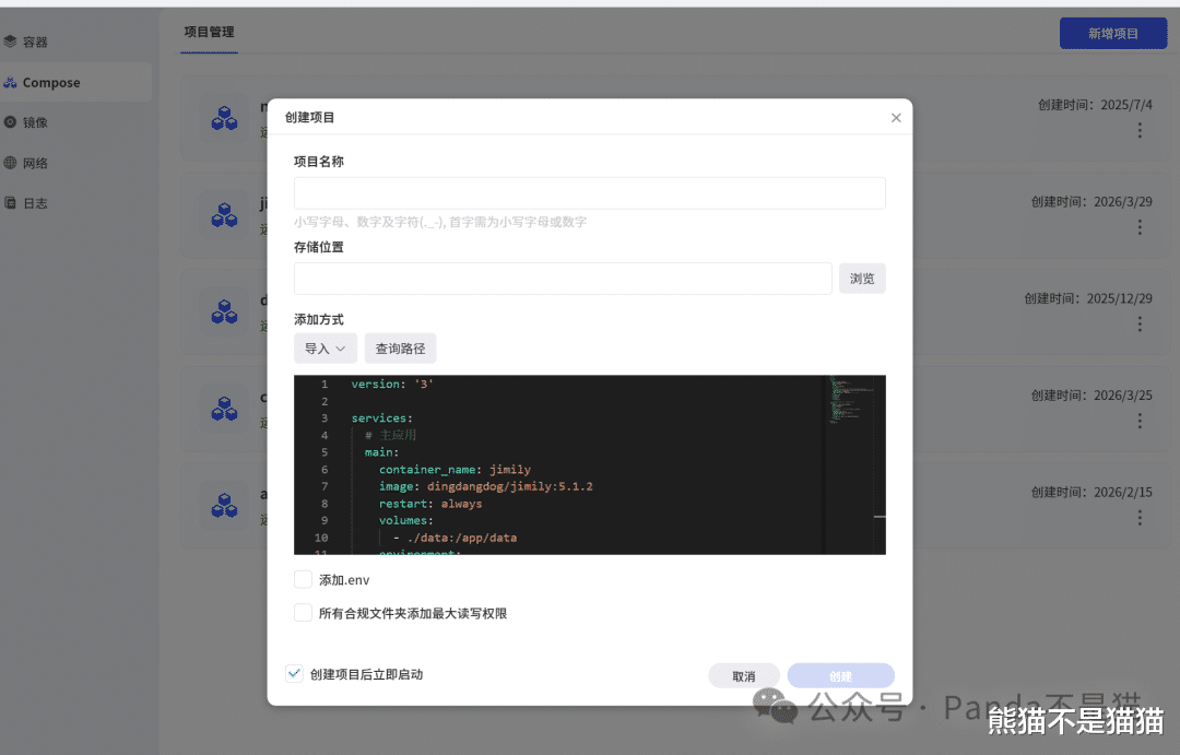项目部署接着来说说项目的部署,这里熊猫用极空间作为例子,毕竟极空间的主要定位就是家庭,不管是极相册还是极影视都是为家庭以及小白用户打造的傻瓜式操作,方便好上手。