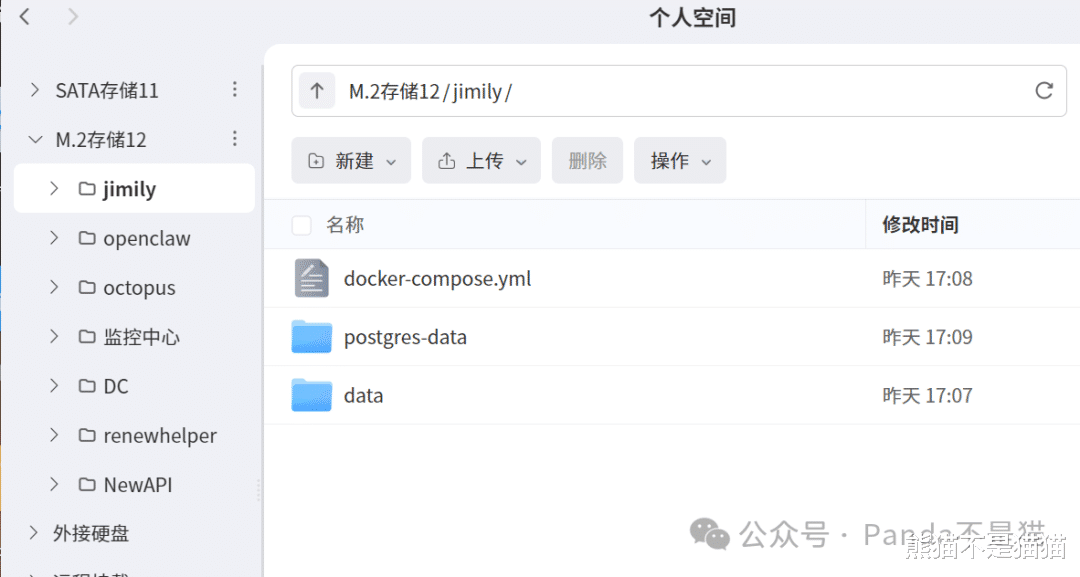 首先我们需要创建好项目的持久化目录,这里推荐在固态硬盘中创建,这样不影响机械盘的休眠情况。
